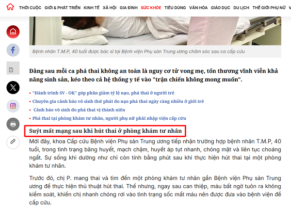 Ngược lại, hút thai chân không – vốn bị nhiều người e ngại – lại là phương pháp an toàn hơn đối với nhiều trường hợp vì có thể kiểm soát trực tiếp bởi bác sĩ.