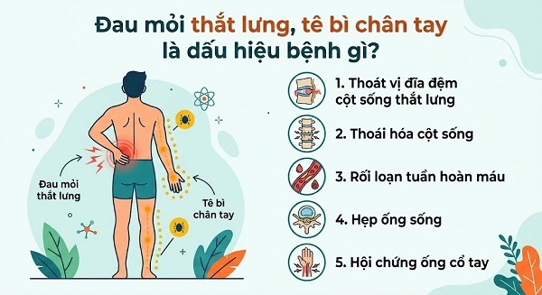 - Đau mỏi thắt lưng, tê bì chân tay là dấu hiệu bệnh gì?
