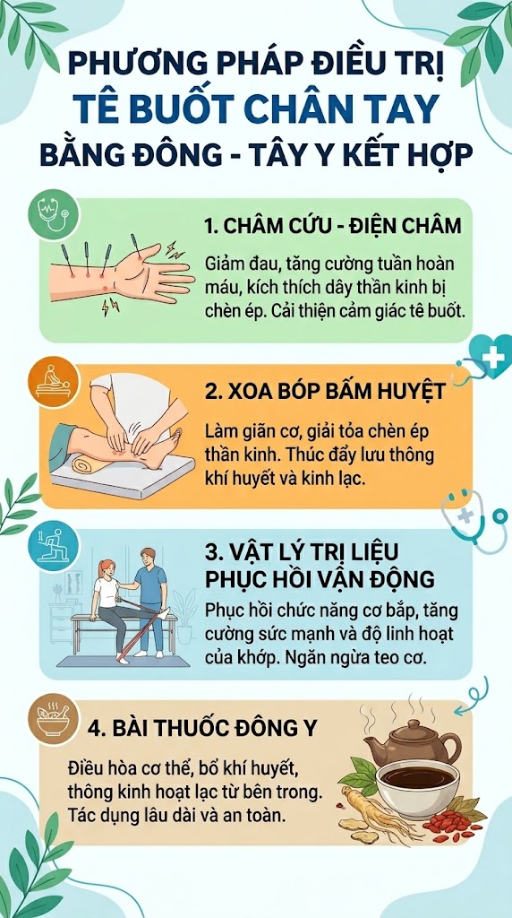 Để cải thiện tê buốt chân tay một cách nhanh chóng và an toàn, việc lựa chọn đúng phương pháp điều trị đóng vai trò vô cùng quan trọng.